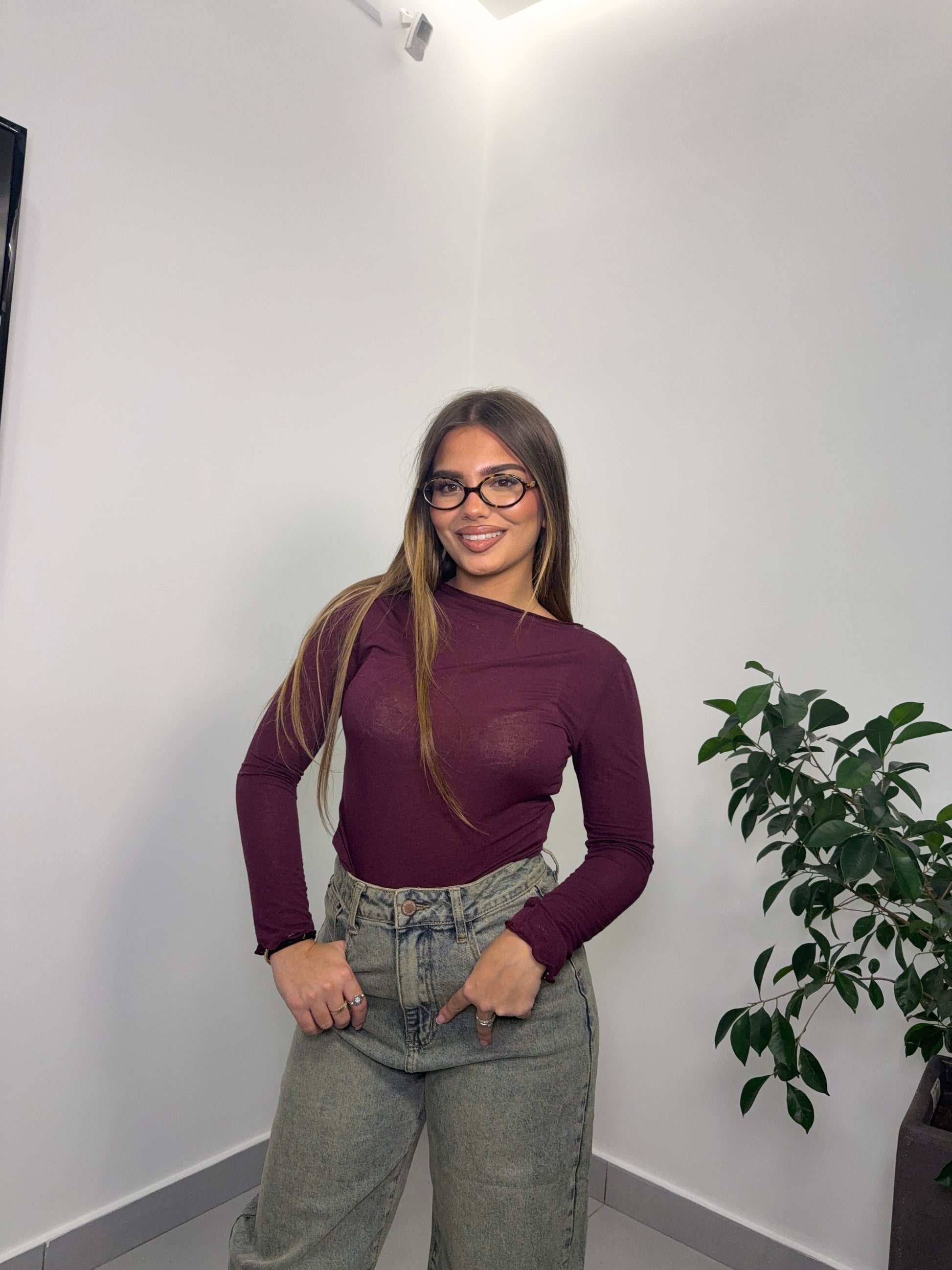Shirt Velatissime scollo a barca Bordeaux 37981